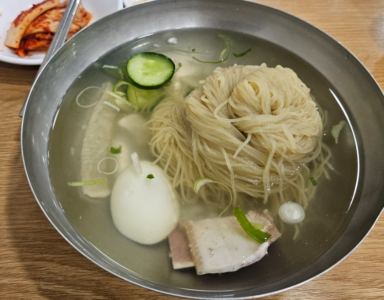 이곳의 냉면은 면발과 국물 이 잘 어우러져 특별한 맛을 선사합니다.