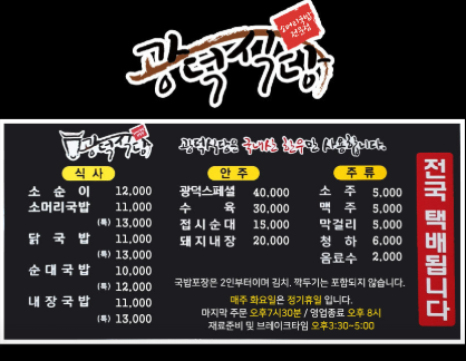순대국밥, 내장국밥, 그리고 소머리 특수 부위 수육 등