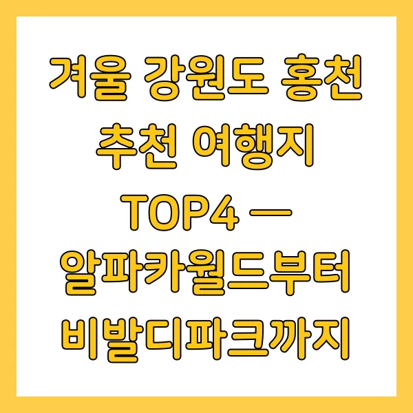 이번 포스팅에서는 겨울철 특별한 매력을 지닌 홍천의 여행지 TOP4 를 실제 체험을 통해 소개합니다.