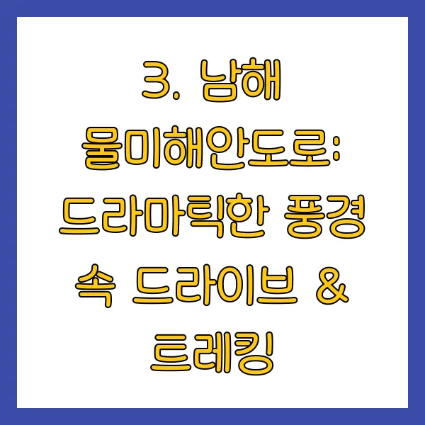 3. 남해 물미해안도로: 드라마틱한 풍경 속 드라이브 & 트레킹