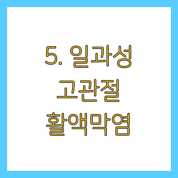 • 염증 : 관절 부위가 붓고 열감을 동반할 수 있습니다.