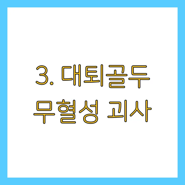 대퇴골두 무혈성 괴사는 고관절 부위에 혈액 공급이 원활하지 않아 뼈 조직에 괴사가 발생하는 질환입니다. 초기에는 별다른 증상이 없으나, 시간이 지나면서 골절과 같은 심각한 증상이 나타날 수 있습니다.