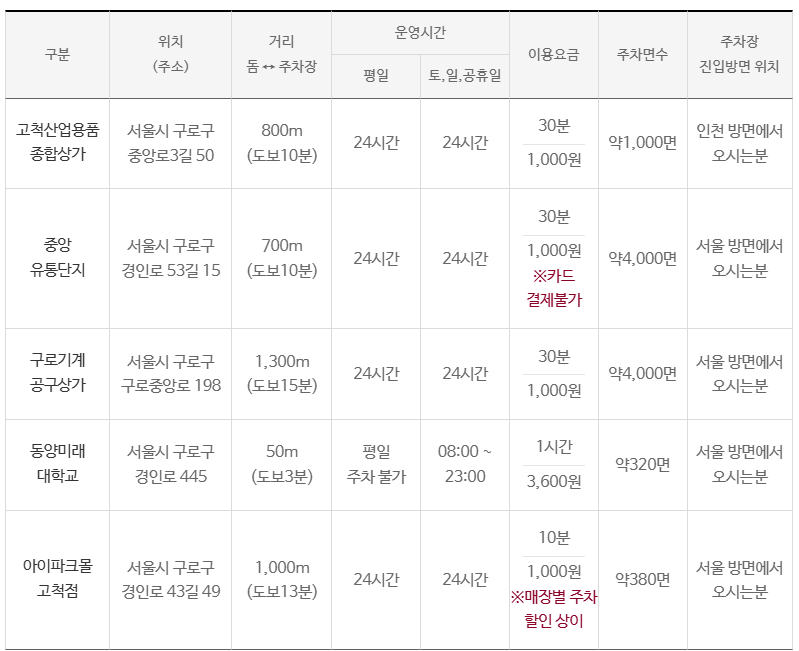 - 지하철 이용 : 1호선 구일역과 도보로 연결