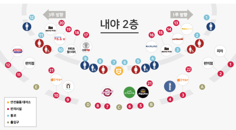 구장 내에는 다양한 먹거리와 편의시설이 준비되어 있어,
