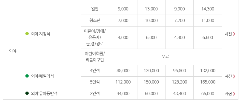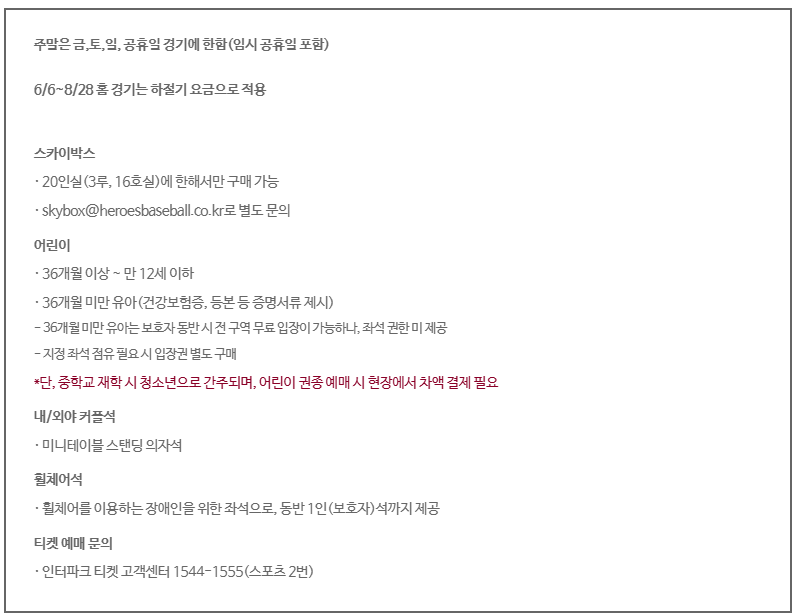 좌석별 요금은 경기의 중요도와 시즌에 따라 다르게 책정될 수 있습니다.