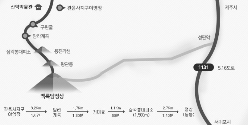관음사 지구 야영장 ▶ 삼각봉 대피소 ▶ 정상