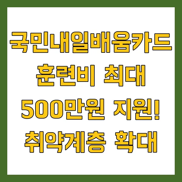 국민내일배움카드 가 더 강력하게 돌아왔습니다! 최대 500만원 의 훈련비 지원으로 여러분의 꿈을 현실로 만드세요! 취약계층 지원 확대, 가정 밖 청소년 자립 지원 강화, 구직자 훈련 기회 확대까지! 2025년 새롭게 개편된 국민내일배움카드 제도를 통해 여러분의 잠재력을 마음껏 펼쳐보세요. 지금 바로 자세한 내용을 확인하고 미래를 향한 투자를 시작하세요!