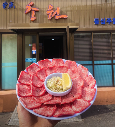 두껍게 커팅하여 스테이크와 같은 식감을 주는 '특상 우설' 이 유명하지요.