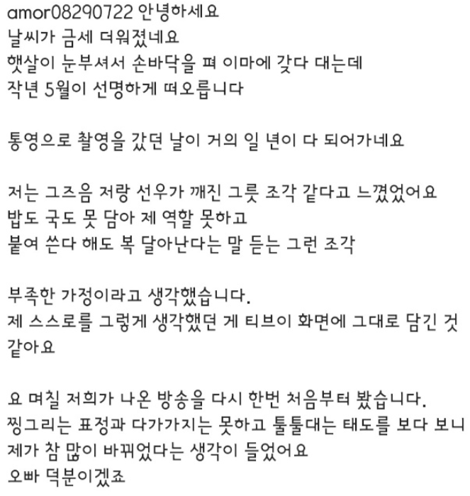 경수 씨 덕분에 새로운 희망을 찾았다는 내용이었어요.