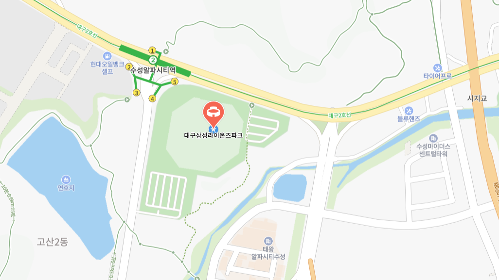 지하철 2호선 수성알파시티역이 구장 근처에 위치해 있어