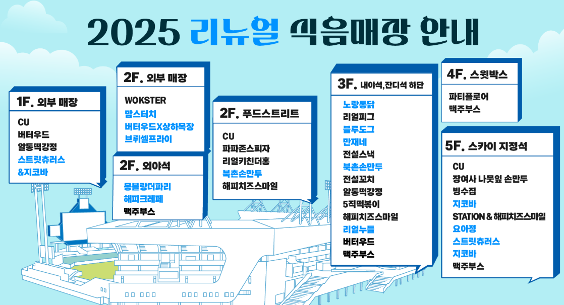 2025년도에 삼성 라이온즈 파크 구장 내 식음매장이 리뉴얼 되었습니다.