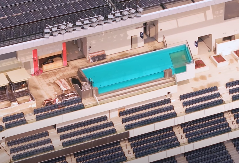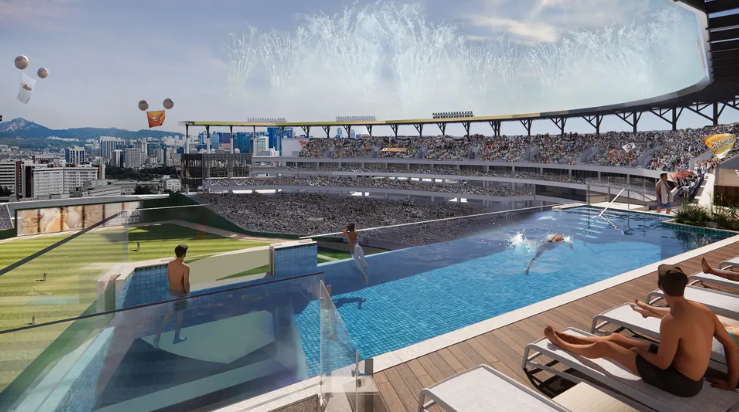 독특한 시설로는 3루수 관중석 상단에 위치한 인피니티 풀 이 있으며,