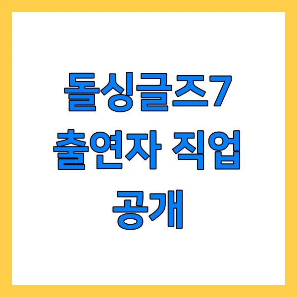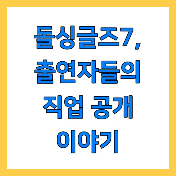 이렇게 출연자들의 직업에 대해 알아보니 각자의 삶이 얼마나 다채로운지 느껴지시죠? <돌싱글즈7>의 출연자들은 다양한 배경과 직업을 통해 자신만의 이야기를 만들어가고 있었어요. 앞으로의 방송에서도 그들이 어떤 매력을 보여줄지 기대되네요. 여러분도 함께 기대해보아요! 😊