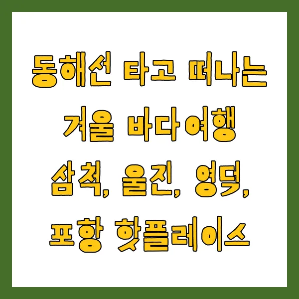 자, 이제 동해선을 타고 겨울 바다의 낭만 속으로 풍덩 빠져볼 준비되셨나요? 삼척, 울진, 영덕, 포항, 각 지역의 숨겨진 매력을 발견하고 잊지 못할 추억을 만들어보세요! 맛있는 음식과 아름다운 풍경은 덤! 겨울 바다 여행, 지금 바로 떠나세요!