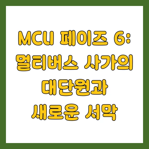 페이즈 6 이후 MCU는 어떤 방향으로 나아갈까요? 멀티버스라는 거대한 세계관을 통해 무한한 가능성을 펼쳐 보일 것으로 예상됩니다. 새로운 히어로의 등장, 예상치 못한 빌런의 부상, 그리고 차원을 넘나드는 흥미진진한 모험까지! 디즈니+ 시리즈를 통해 더욱 다양한 캐릭터와 스토리라인을 탐구하며 MCU의 세계관은 더욱 풍성해질 것입니다. MCU의 미래는 밝고 무궁무진합니다. 앞으로 펼쳐질 놀라운 이야기들을 기대하며, MCU의 끊임없는 확장과 진화를 함께 지켜보도록 하죠!