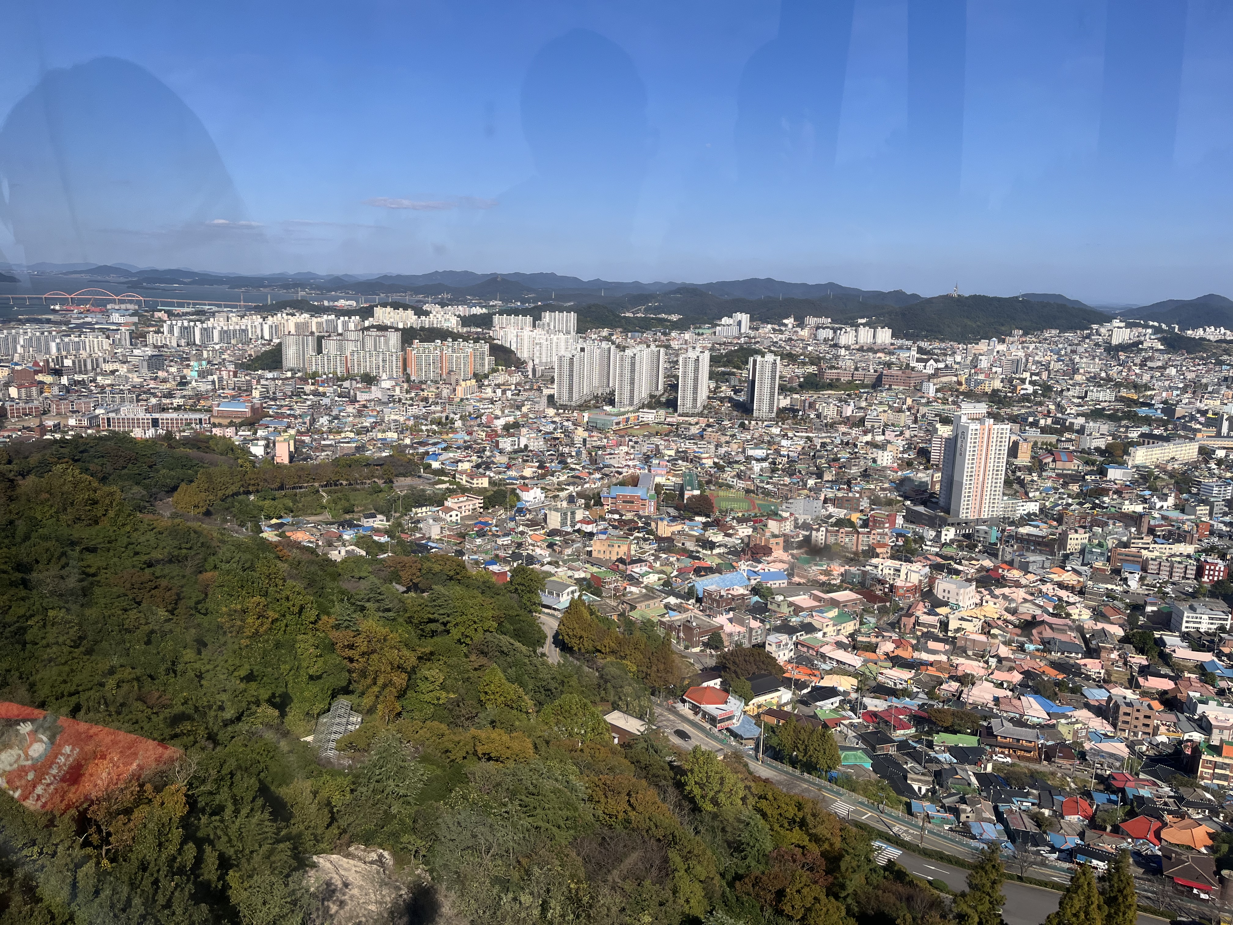 북항 승강장에서 유달산 승강장으로 갈 때 목포 시내가 한눈에 내려다 보입니다. 목포의 크고 작은 주택가 너머로 작은 산들과 바다, 목포대교를 감상할 수 있습니다.