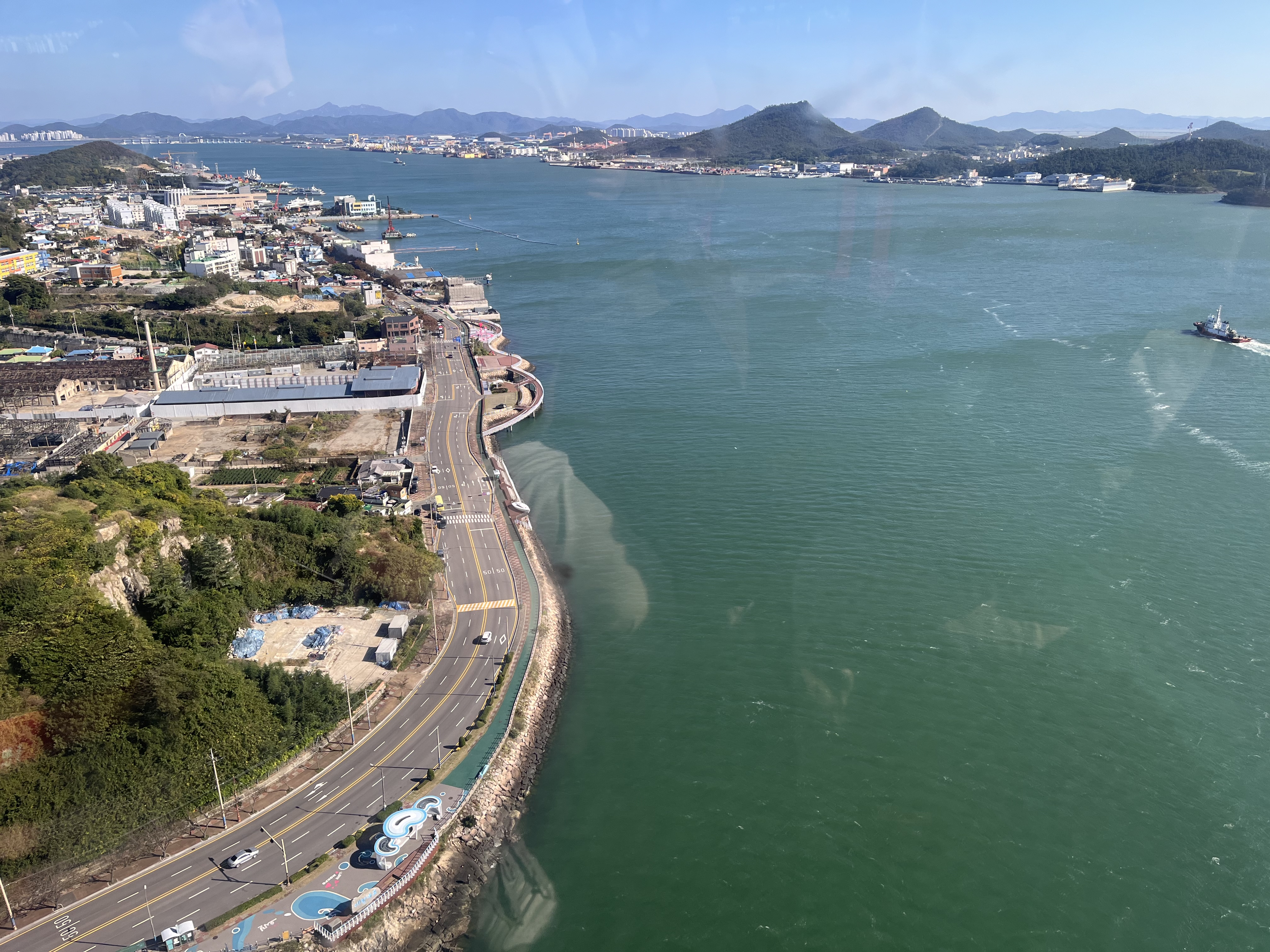 유달산 승강장을 지나쳐 고하도 승강장으로 가는 도중에 155m의 가장 높은 케이블카 타워가 있습니다.