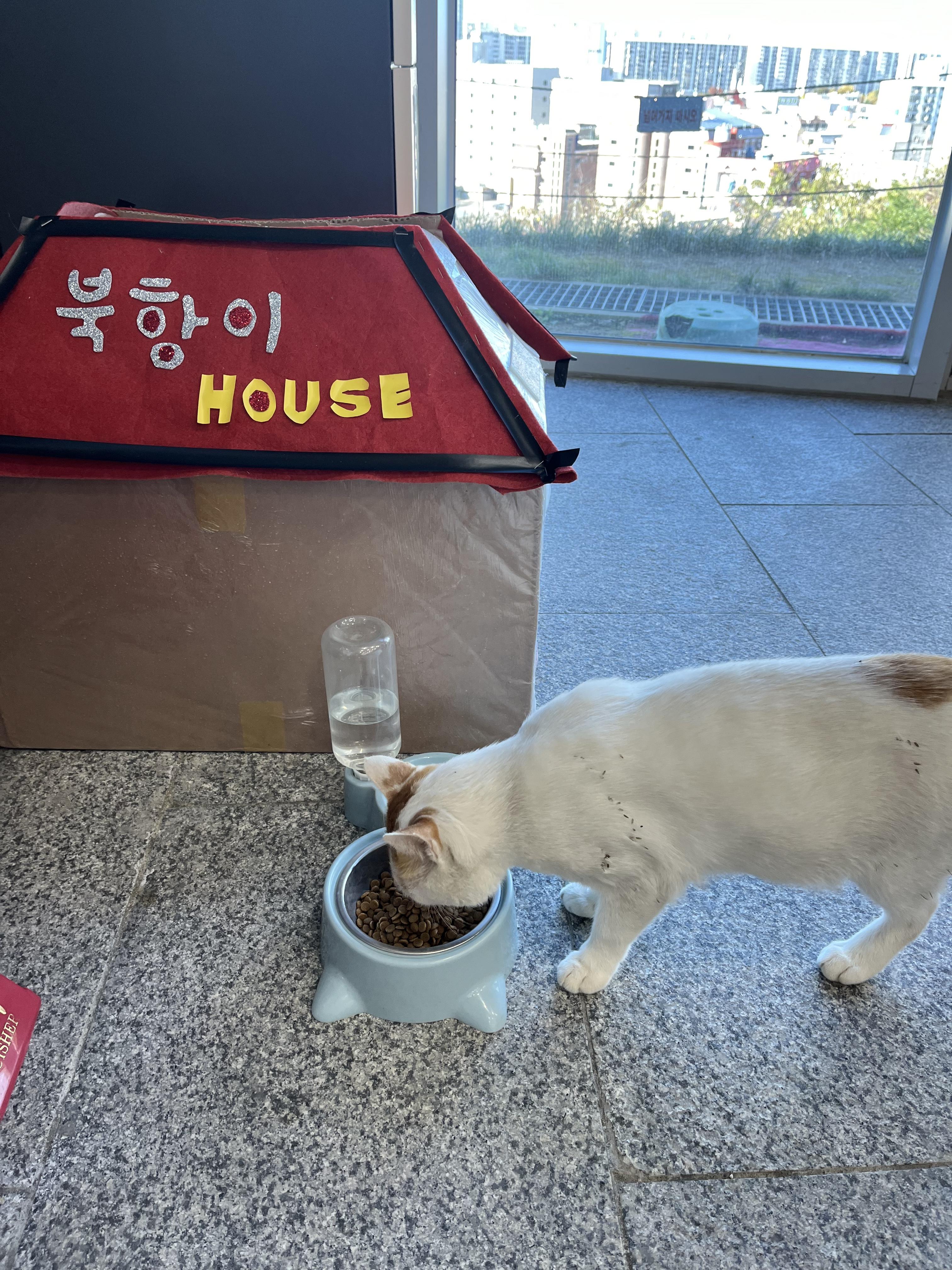 북항 승강장에는 귀여운 마스코트인 북항이 고양이가 자리를 지키고 있습니다. 아마도 길고양이에게 집과 사료를 챙겨주시는 것 같습니다. 낯을 약간 가리지만 조용히 승강장 내부에 있어 사람들에게 피해를 끼치지 않습니다. 해상케이블카에서 일하시는 직원분들이 살뜰히 북항이를 챙겨주시는 것 같아 감동적이었습니다.