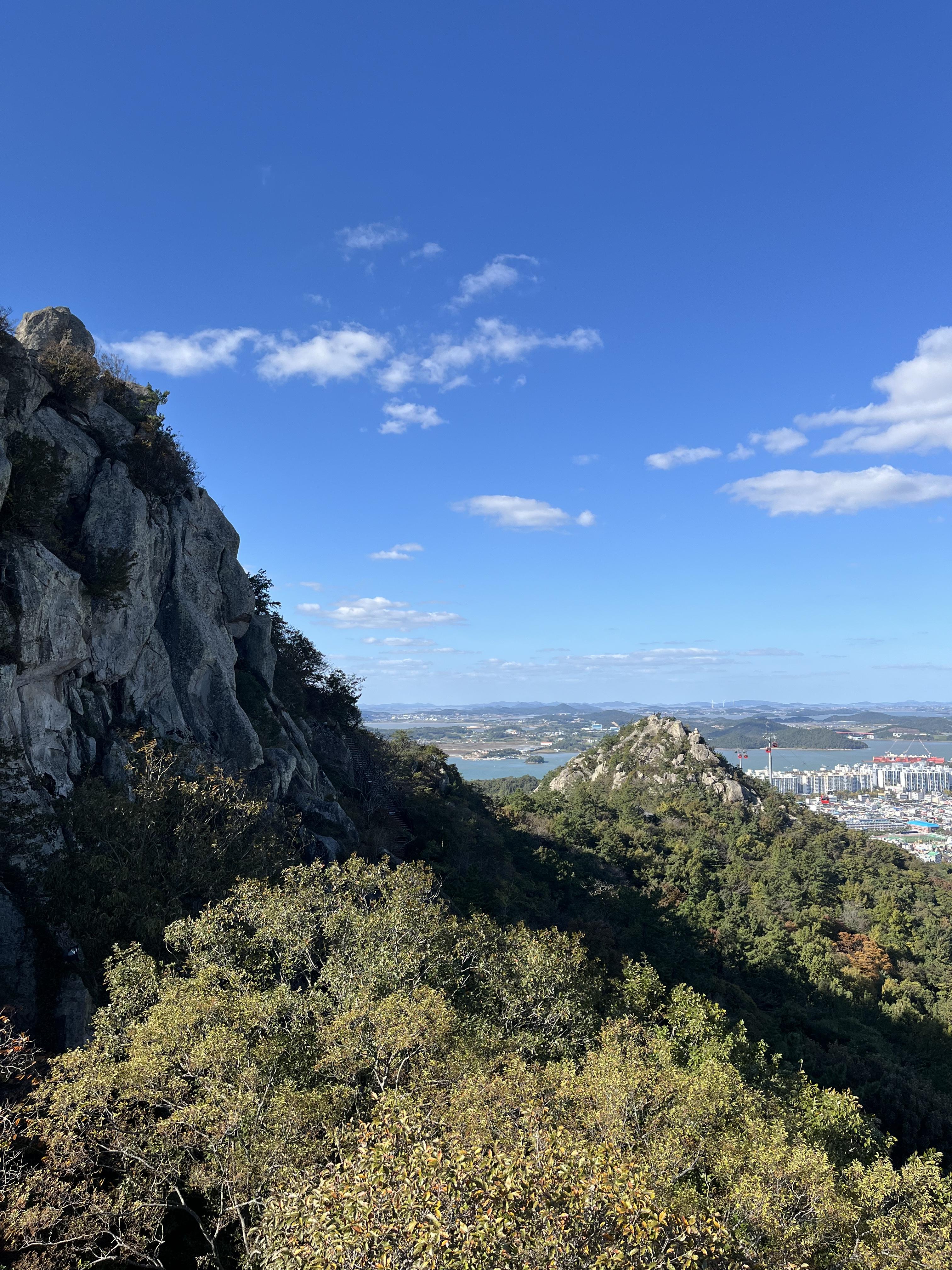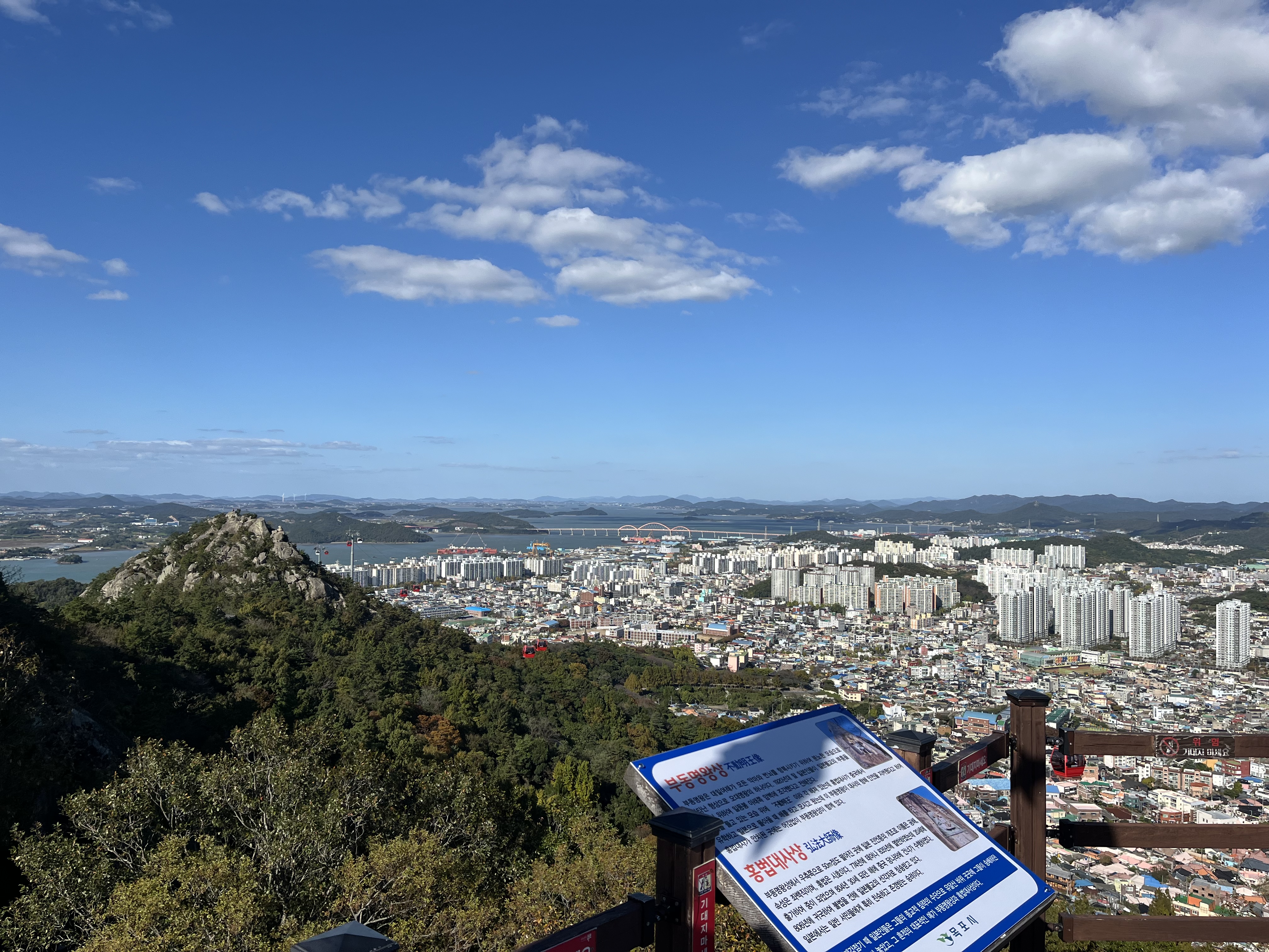 유달산 승강장에서 내려 유달산 등산길을 따라 올라가면 유달산의 대표 관광지인 마당바위와 일등바위를 만날 수 있습니다. 올라가는 데크계단이 다소 가파르지만 5분~10분 내외로 짧은 구간이어서 크게 힘들지 않았습니다. 전망대에 오르면 가까이에 마당바위와 뒤에 일등바위가 내려다 보입니다. 또한 목포의 시내 전경과 목포바다, 섬들이 한눈에 내려다보입니다. 크지 않은 목포 시내가 전망대에서 파노라마처럼 보입니다.