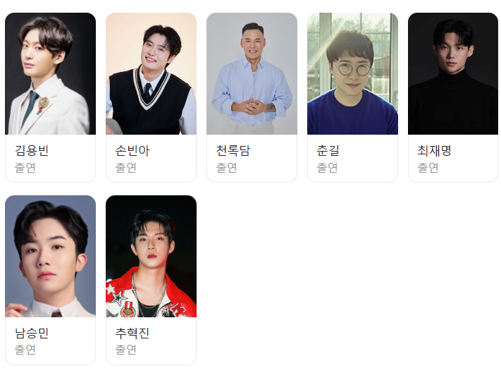 춘길, 천록담, 김용빈, 손빈아, 추혁진, 최재명, 남승민으로