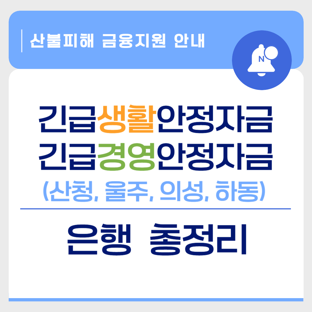 [산불] 긴급생활안정자금, 긴급경영안정자금 은행 리스트
