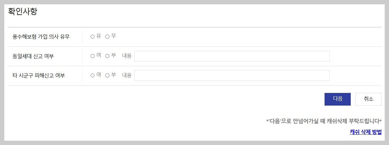 3-7. 확인사항 입력 후 다음을 클립합니다.
