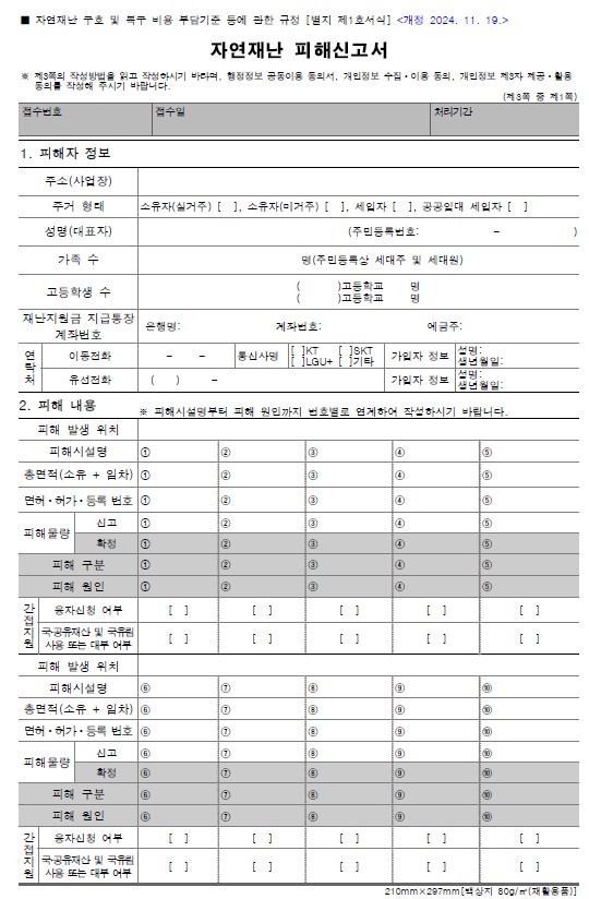 🔹 자연재해 피해신고서