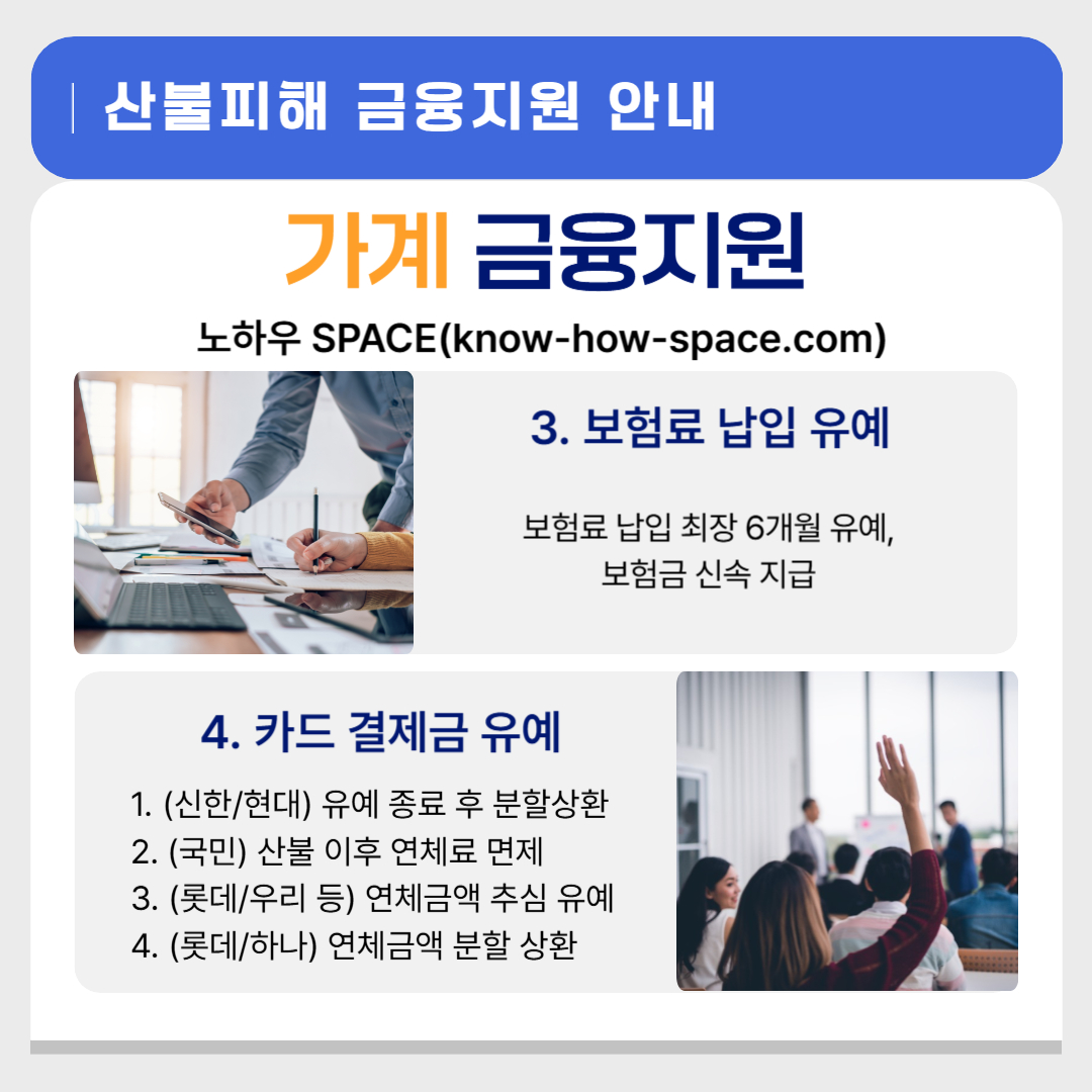 보험사의 경우, 피해 발생 이후 보험료 납입을 최장 6개월 유예 하며,