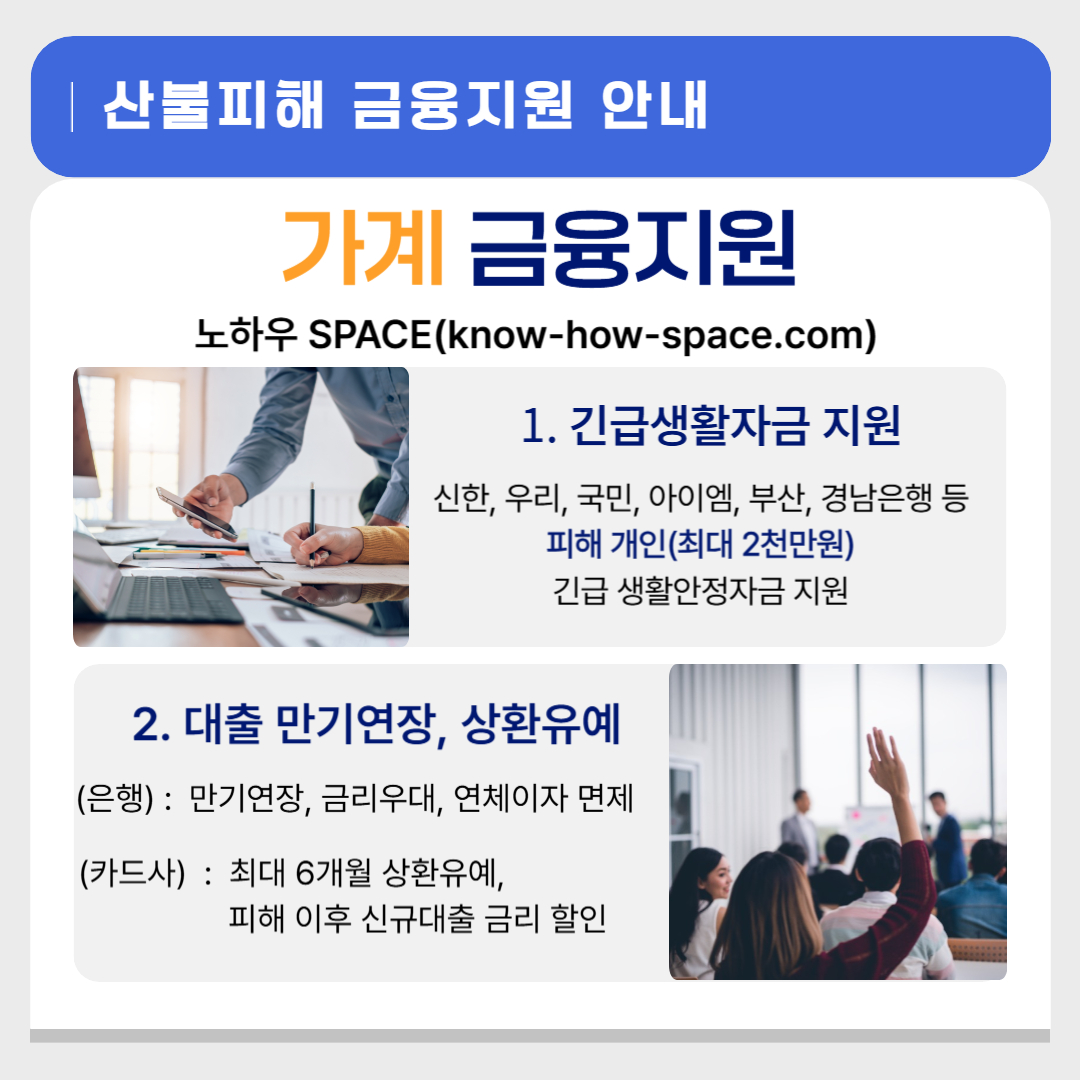 이러한 금융지원 방안은 산불 피해를 입은 가계 및 기업이