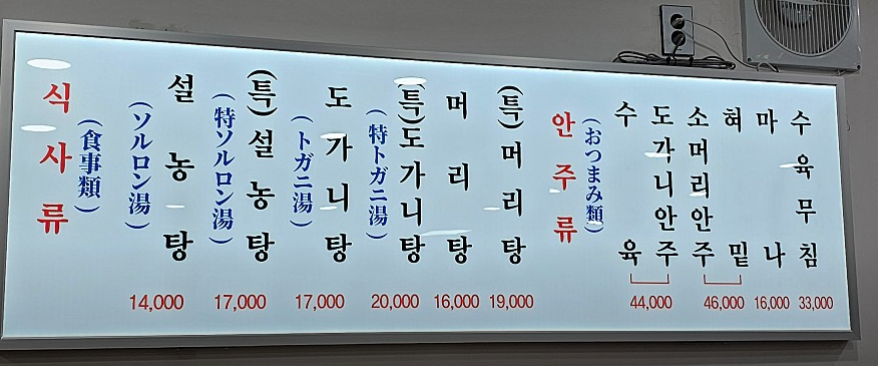 또한, 수육(44,000원), 도가니안주(44,000원),