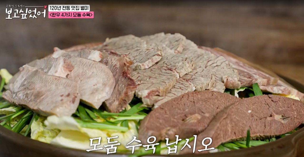모둠 수육은 다양한 부위를 한 번에 맛볼 수 있어 조화로운 풍미 를 느낄 수 있습니다.