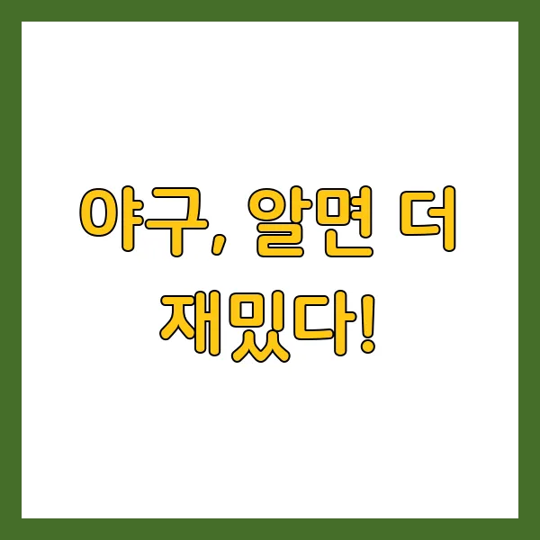 야구의 규칙이 많아 보일 수 있지만, 하나하나 알아가는 재미가 쏠쏠하답니다. 경기를 제대로 이해하면, 경기 관람이 훨씬 더 흥미로워지고 새 친구를 사귈 수도 있어요! 야구의 숨은 매력을 더 알고 싶다면 계속해서 깊이 파고들어보세요! ⚾