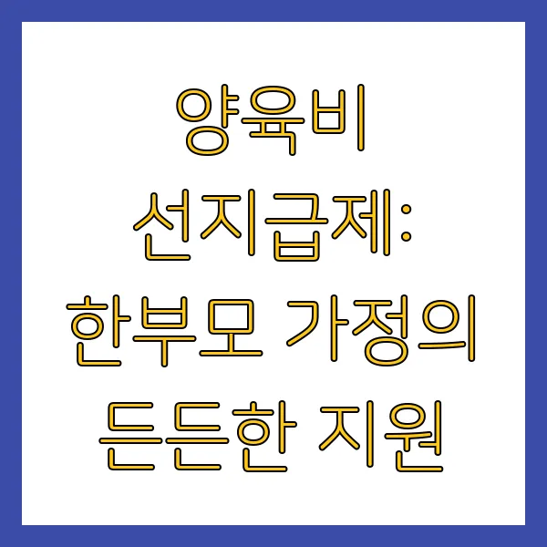 이번 기회를 통해 양육비 선지급제를 신청하고, 자녀와 함께 더 나은 생활 환경을 구축해 보세요. 이 시스템은 단순한 금전적 지원을 넘어 한부모 가정의 미래를 밝히는 희망의 불빛이 될 것입니다.