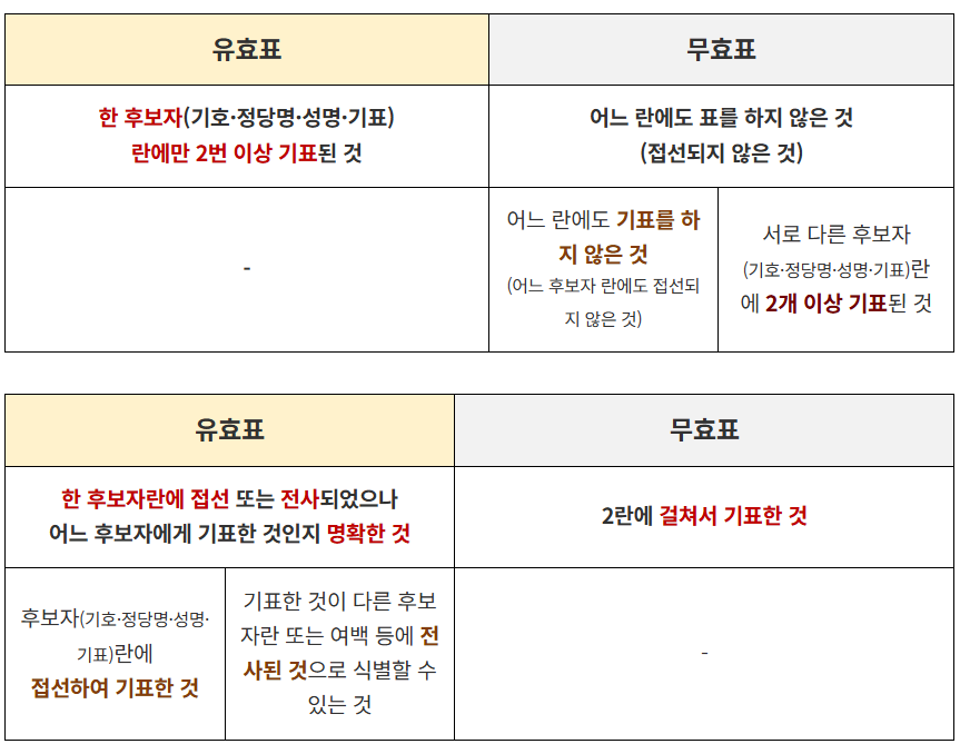 이번 포스트에서는 유효표와 무효표의 기준을 세부적으로 살펴보겠습니다.