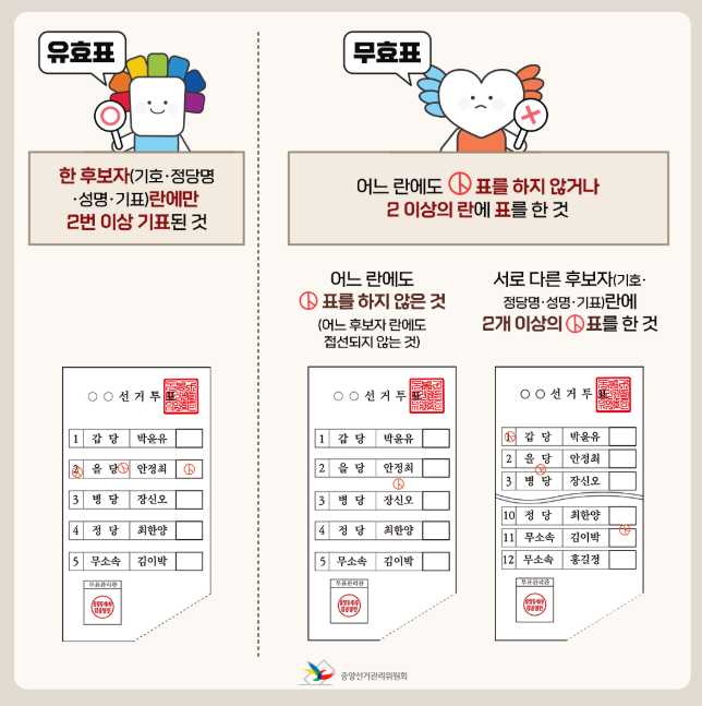 소중한 한 표가 무효화되지 않도록 주의해야 합니다.