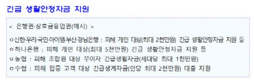 👇 긴급생활/경영안정자금 은행 리스트 확인