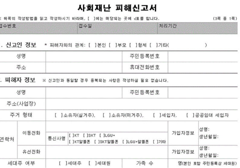 👇 읍면동사무소 피해신고서 작성 및 신청방법 아래에서 확인하세요!