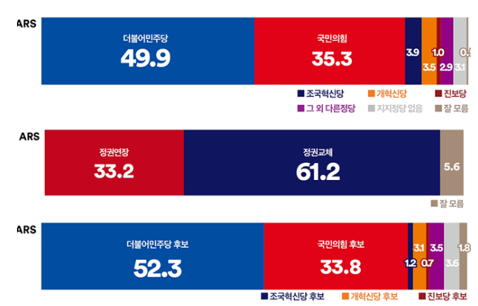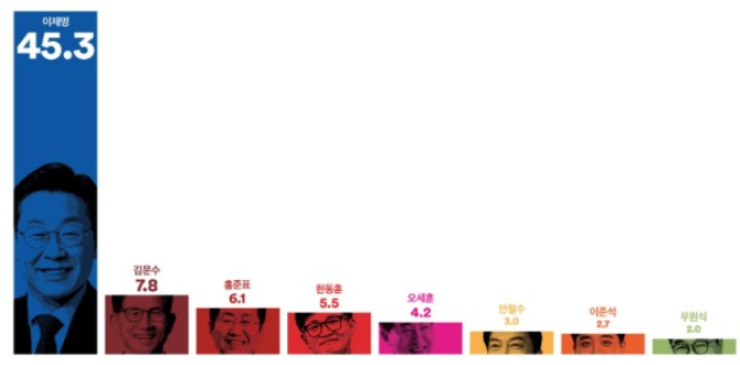 국민의힘 주요 후보와의 격차는 무려 최소 21%포인트에 달하며,