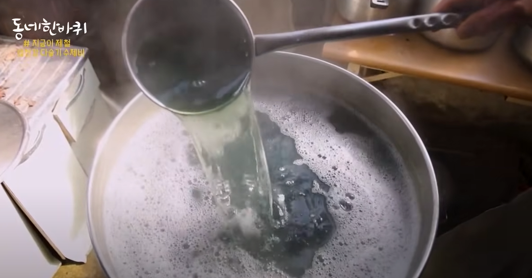 다슬기는 통째로 갈아 맑게 끓여내는데,