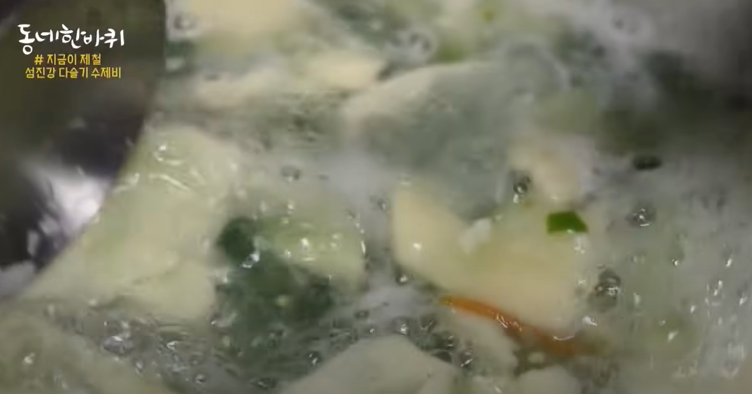 다슬기는 통째로 갈아 맑게 끓여내는데,