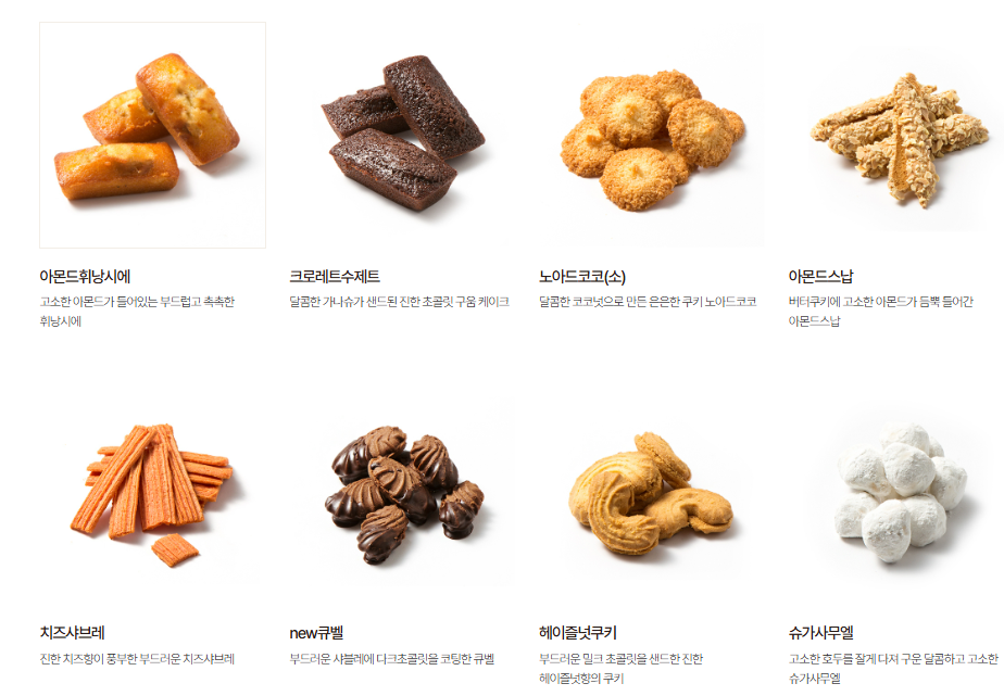전통과자, 쿠키류 등 다양한 제품이 준비되어 있어요.