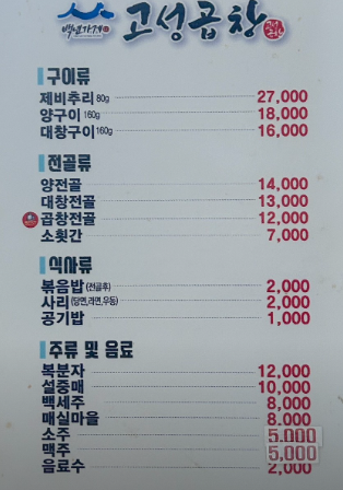 양구이·대창구이 같은 단품 메뉴도