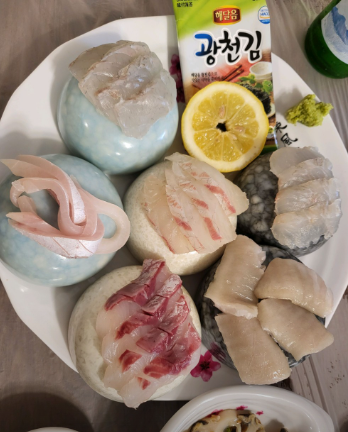 신선한 해산물 모둠, 고소한 광어회,
