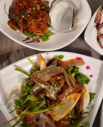대표 기본 안주로는 멸치무침회, 아귀수육, 문어숙회 등이 있으며,