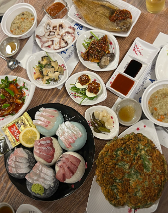 그날 들어온 신선한 해산물로 구성됩니다.