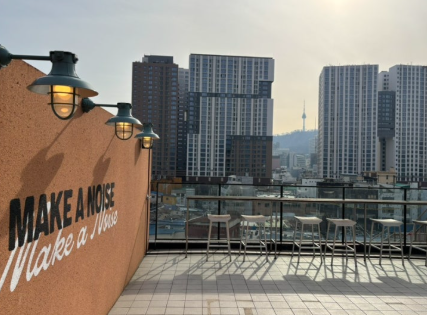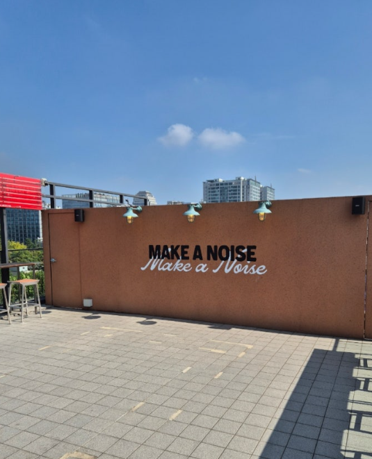 루프탑 좌석 에서는 아티스트의 공연 및 플리마켓 행사를 개최하여
