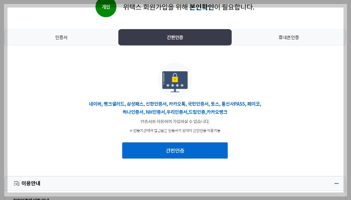 ▼ 위택스 홈페이지에서 본인확인을 합니다.