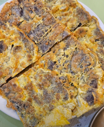 메밀가루와 계란으로 감싸 바삭하게 구워냈습니다.