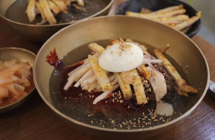 해물 육수를 기반으로 한 이 냉면은