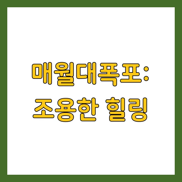 대중에게 덜 알려진 만큼, 번잡함 없이 나만의 감성으로 풍경을 즐길 수 있는 진정한 힐링 명소입니다. 철원에서 자연의 경이로움을 경험하고 싶다면, 매월대폭포는 꼭 기억해두어야 할 장소입니다.